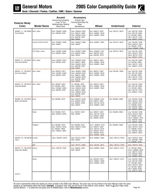 Gm Manufacturer Paint Color Reference